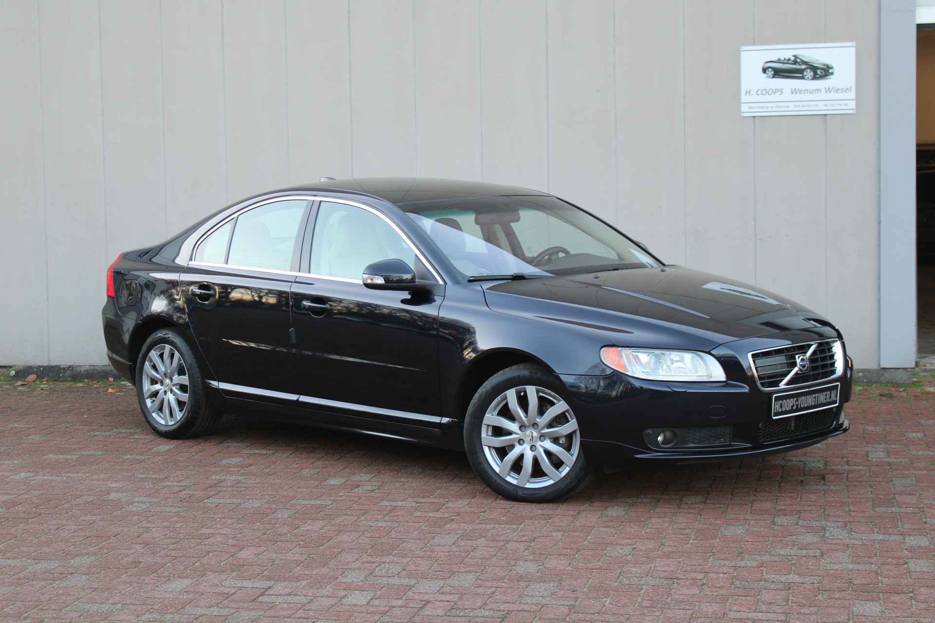 Deze Volvo S80 met de heerlijke 3.2 zescilinder met een zestraps automaat staat er borg voor dat je zeer comfortabel van A naar B wordt gebracht. Uitgevoerd in "koninklijk" magic blue metallic met een beige lederen interieur. De beide voorstoelen zijn elektrisch verstelbaar en voorzien van stoelverwarming en stoelventilatie, de beide buitenste zitplaatsen achterin zijn ook voorzien van stoelverwarming. Tel daarbij een fullscreen navigatiesysteem, bluetooth verbinding af fabriek, adaptive cruisecontrol, het Premium Sound audiosysteem, keyless entry, Bi Xenon verlichting met aktieve bochtverlichting en de zijruiten zijn dubbel glas zodat het interieur nog geluidsarmer wordt.